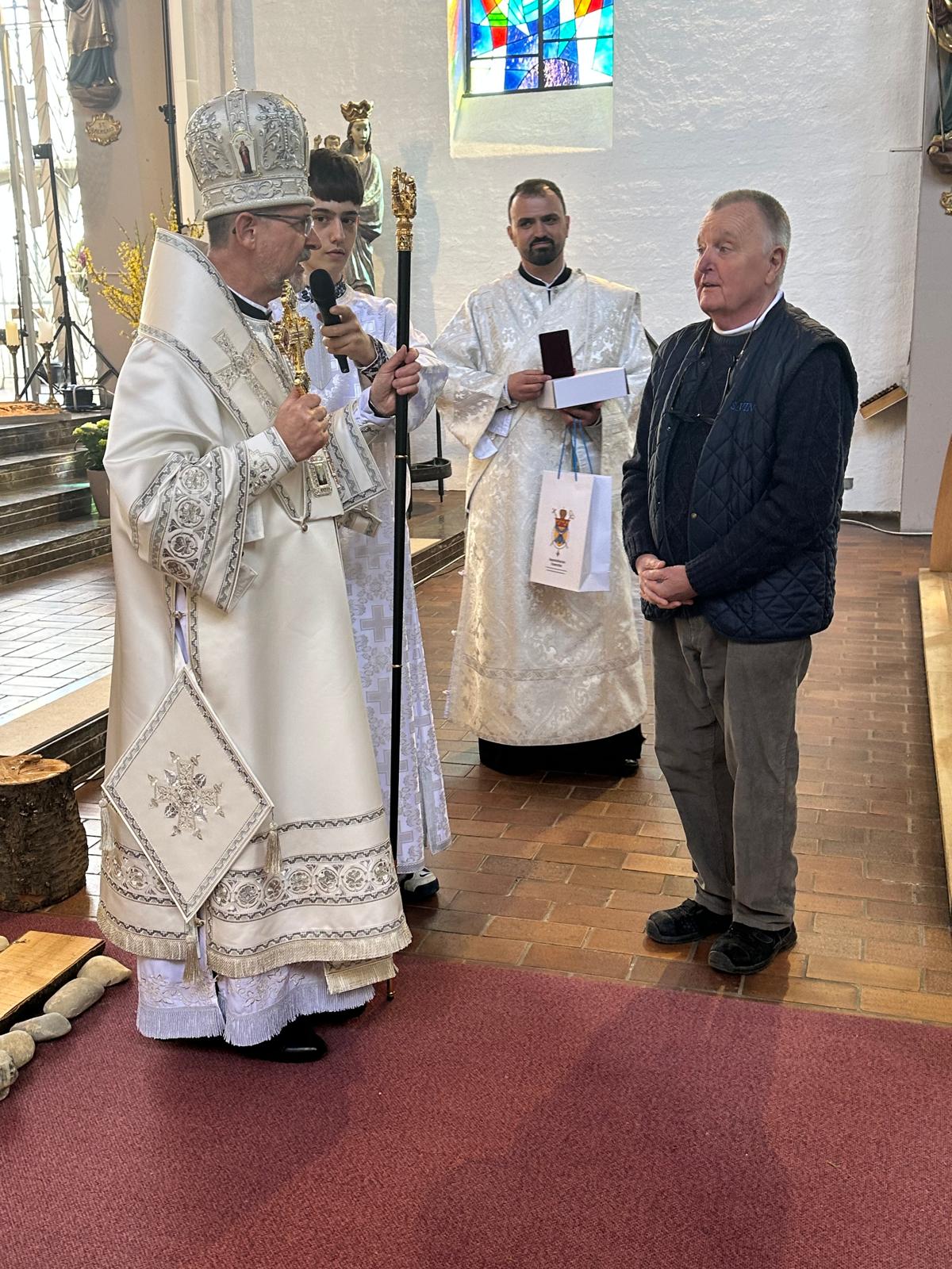 Die Pfarrei Allerheiligen ist seit längerer Zeit ein Zentrum humanitärer Unterstützung für Ukrainer in München und ermöglicht Priestern der Kathedrale Mariä Schutz, dort Liturgien für Ukrainer zu feiern, die kriegsbedingt ihre Heimat verlassen mussten. Der Besuch von Bischof Dr. Bohdan verlieh dem Ganzen eine besondere geistliche Dimension: Die österliche Begegnung mit dem Bischof war eine Erinnerung daran, dass hinter der materiellen Rettung etwas unermesslich Größeres steht.