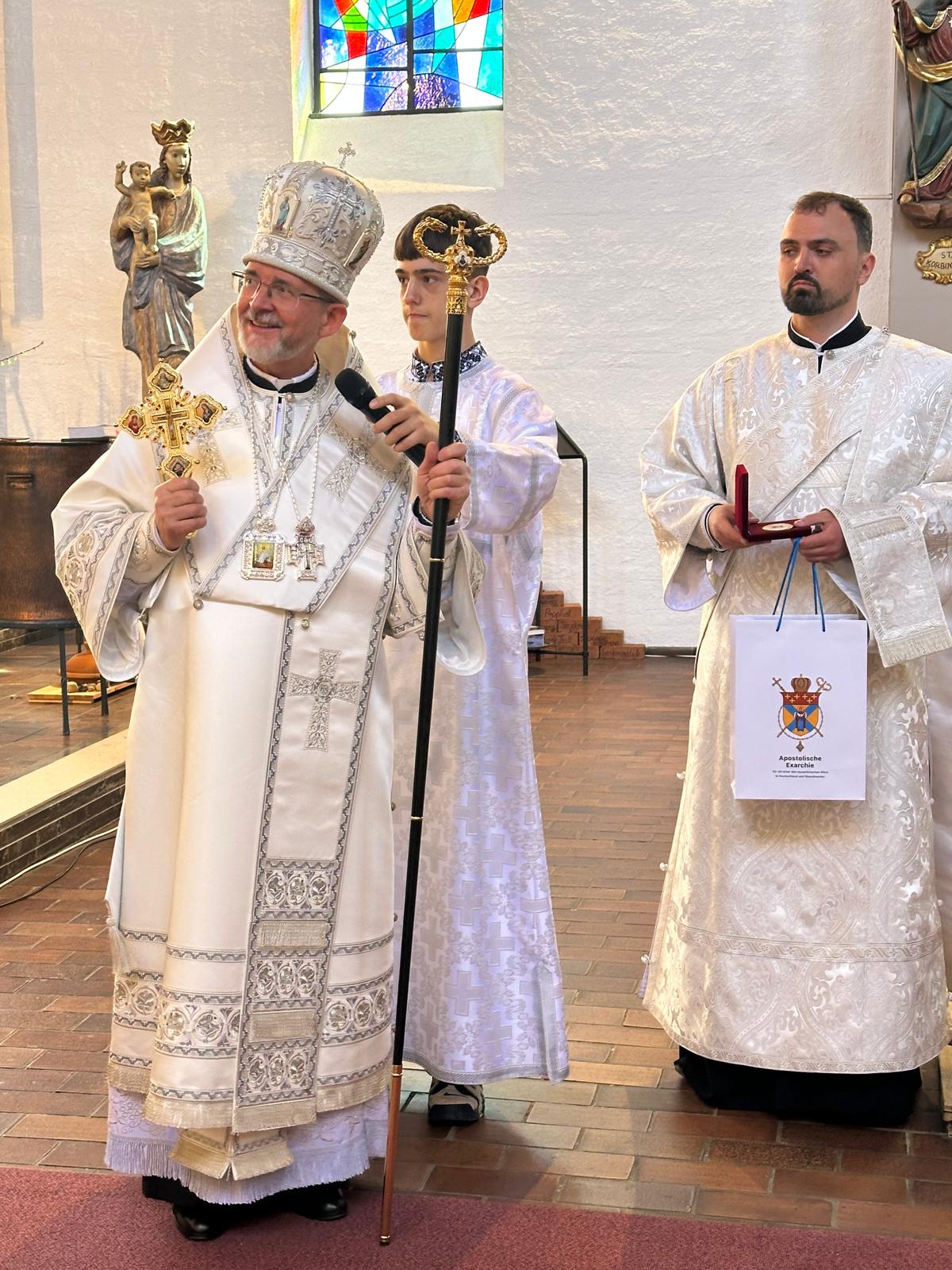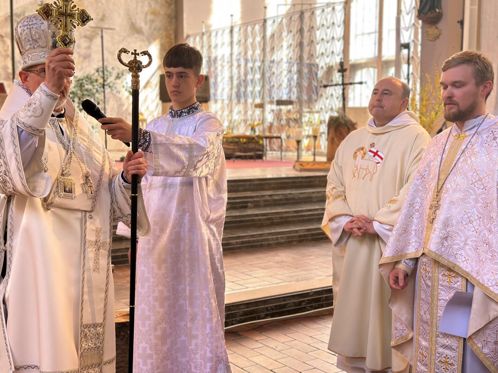 Am 6. April 2026 besuchte Bischof Dr. Bohdan Dzyurakh die Ukrainer, denen die deutsche Pfarrgemeinde Allerheiligen in München humanitäre Hilfe leistet. Der Apostolische Exarch feierte die Bischöfliche Göttliche Liturgie, an die sich ein gemeinsames Ostermahl anschloss. Die Veranstaltung versammelte Dutzende Ukrainer – darunter viele, die wegen des Krieges in Bayern Zuflucht gefunden haben.
