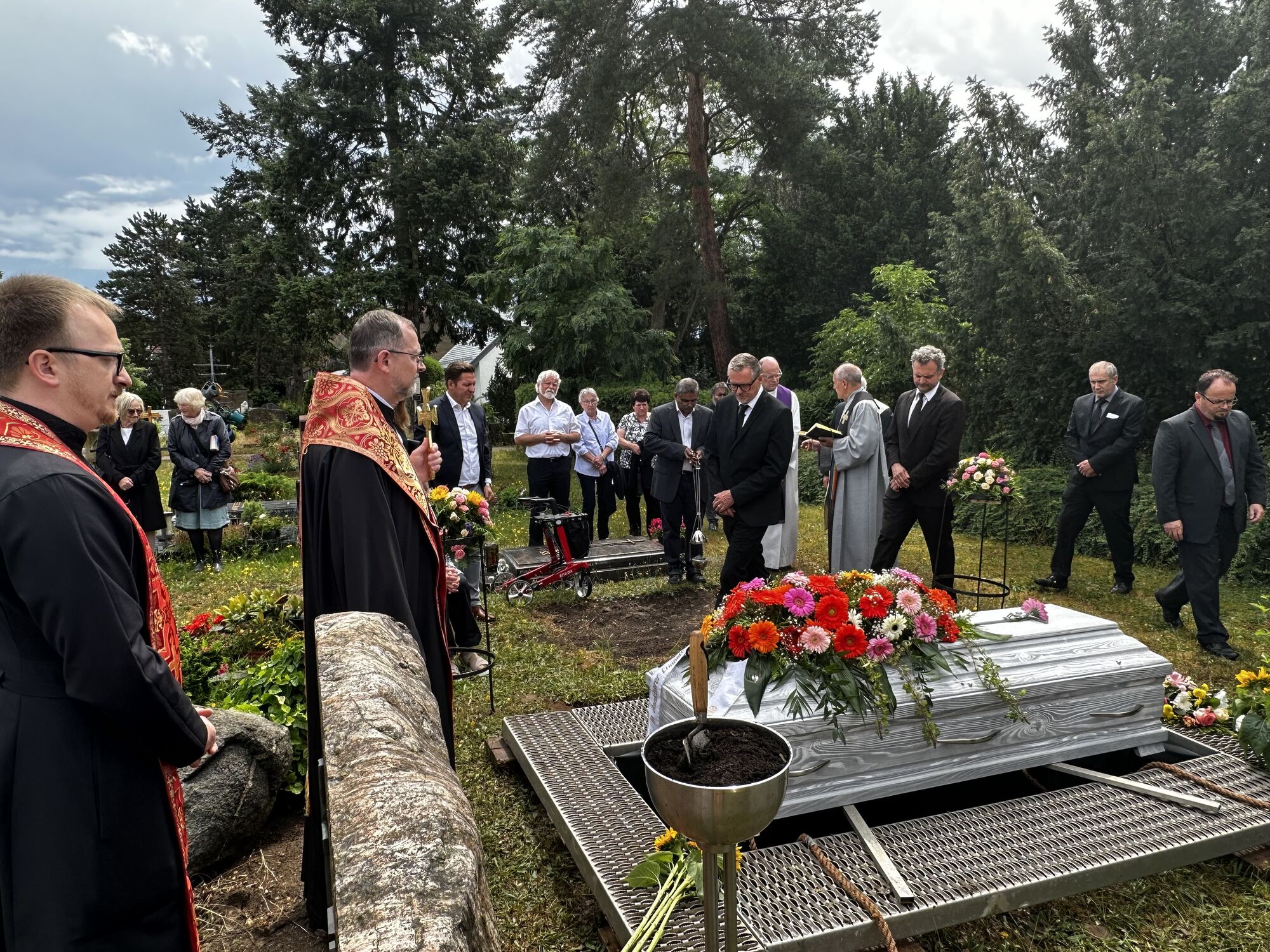 «Сьогодні ми прощаємося з нашим дорогим отцем Петером Бюттнером, ревним пастирем, люблячим чоловіком і батьком його сім’ї, нашим добрим другом і, перш за все, добрим і вірним учнем Христа. Він вирішив слідувати за Христом і тепер завершив свою подорож. Цей шлях не завжди був легким для нього, це був шлях, на якому його не оминула його Голгофа, Голгофа останніх страждань», — звернувся до усіх присутніх з прощальним словом архиєрей, в якому зазначив, що о. Петер тепер увійшов у вічну любов Христа, запевняючи в єднанні з його скорботною сім’єю в ці дні, в яких разом супроводжуємо покійного ієрея на цьому шляху до вічної любові Бога нашою людською любов’ю, нашою вдячністю та нашими молитвами.