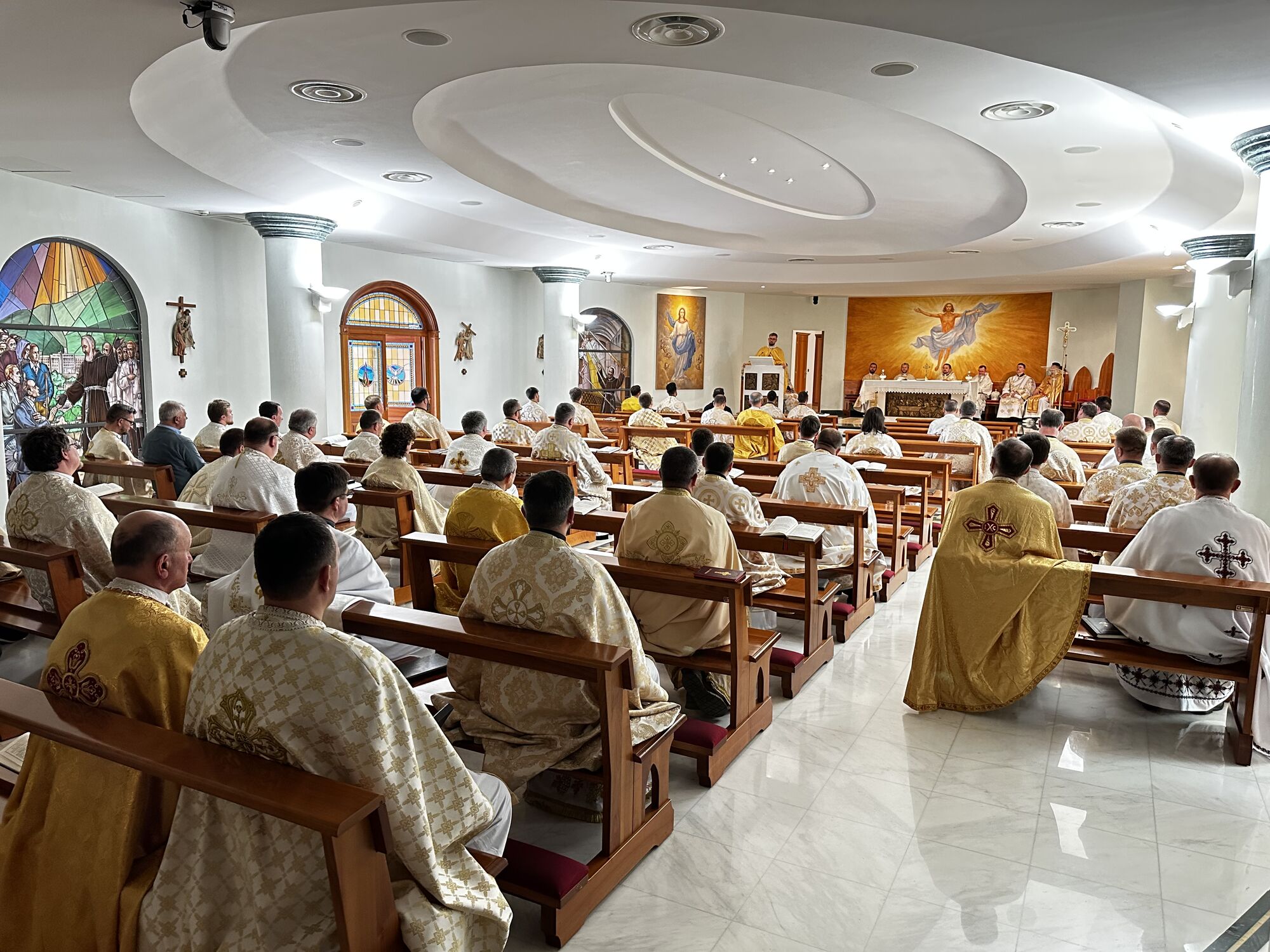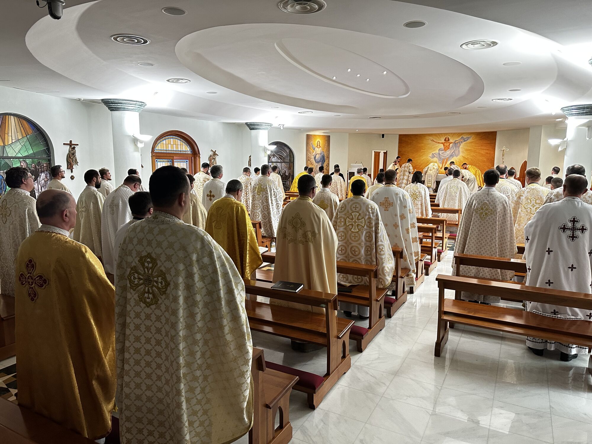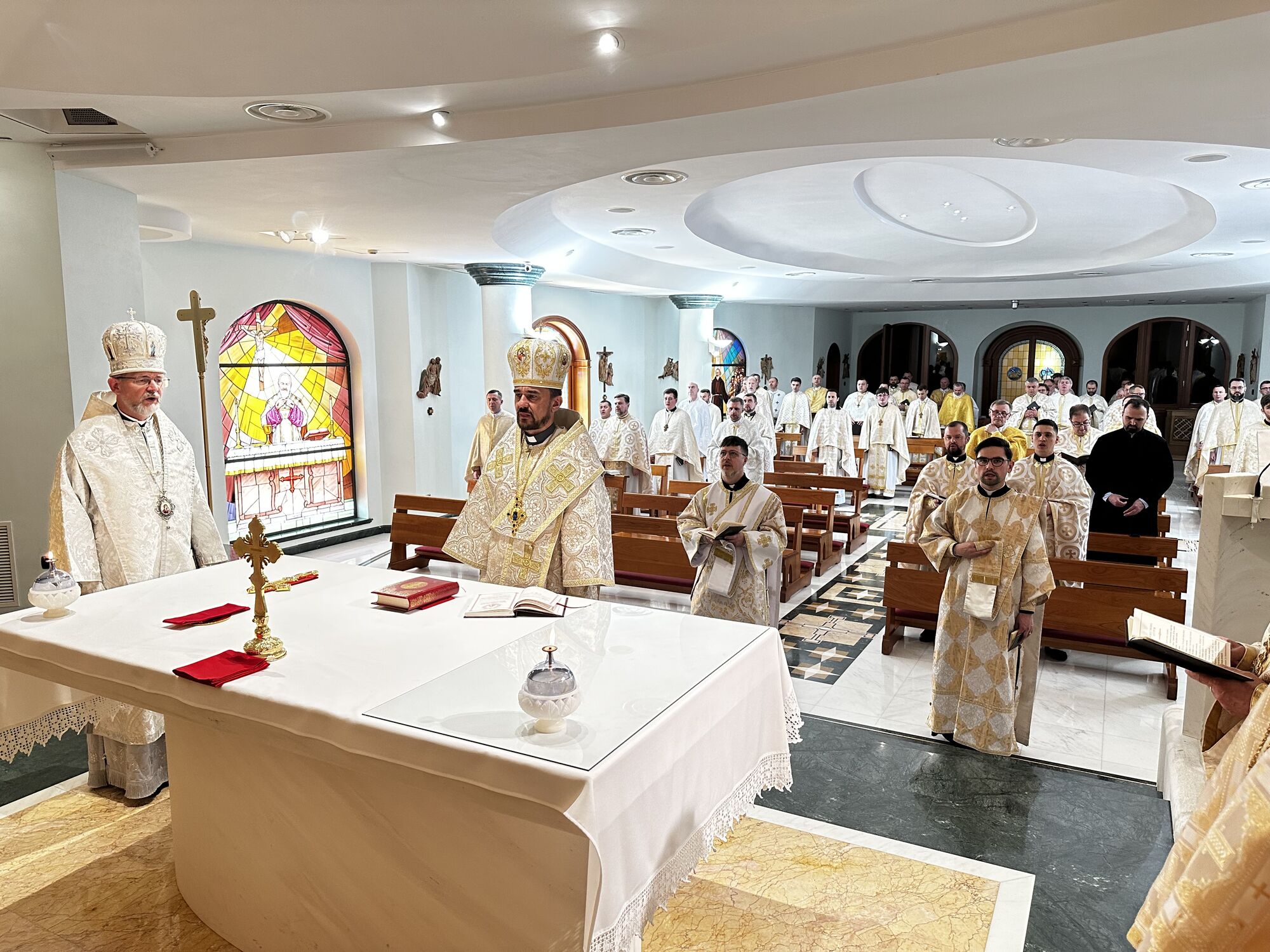 Духовна віднова розпочалася молитвою за мир в Україні, яку очолив апостольський екзарх владика Богдан. У своєму слові до священників єпископ наголосив, що молитва — це не лише вираз особистої віри, а й сила, яка скеровує людину до дії: до проповіді доброї новини, що несе мир. Тому, за словами архиєрея, священники покликані чувати над своїми серцями, щоб своїм служінням і словом дарувати людям надію.