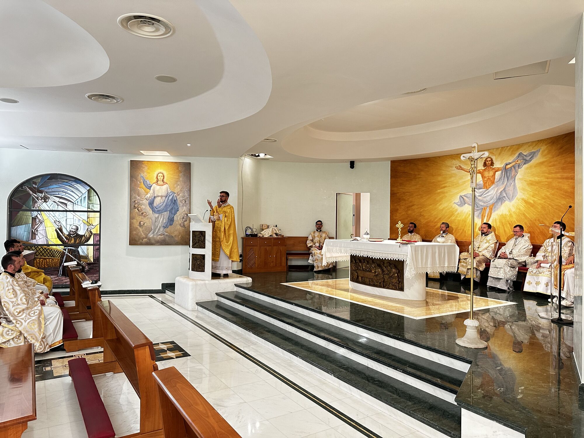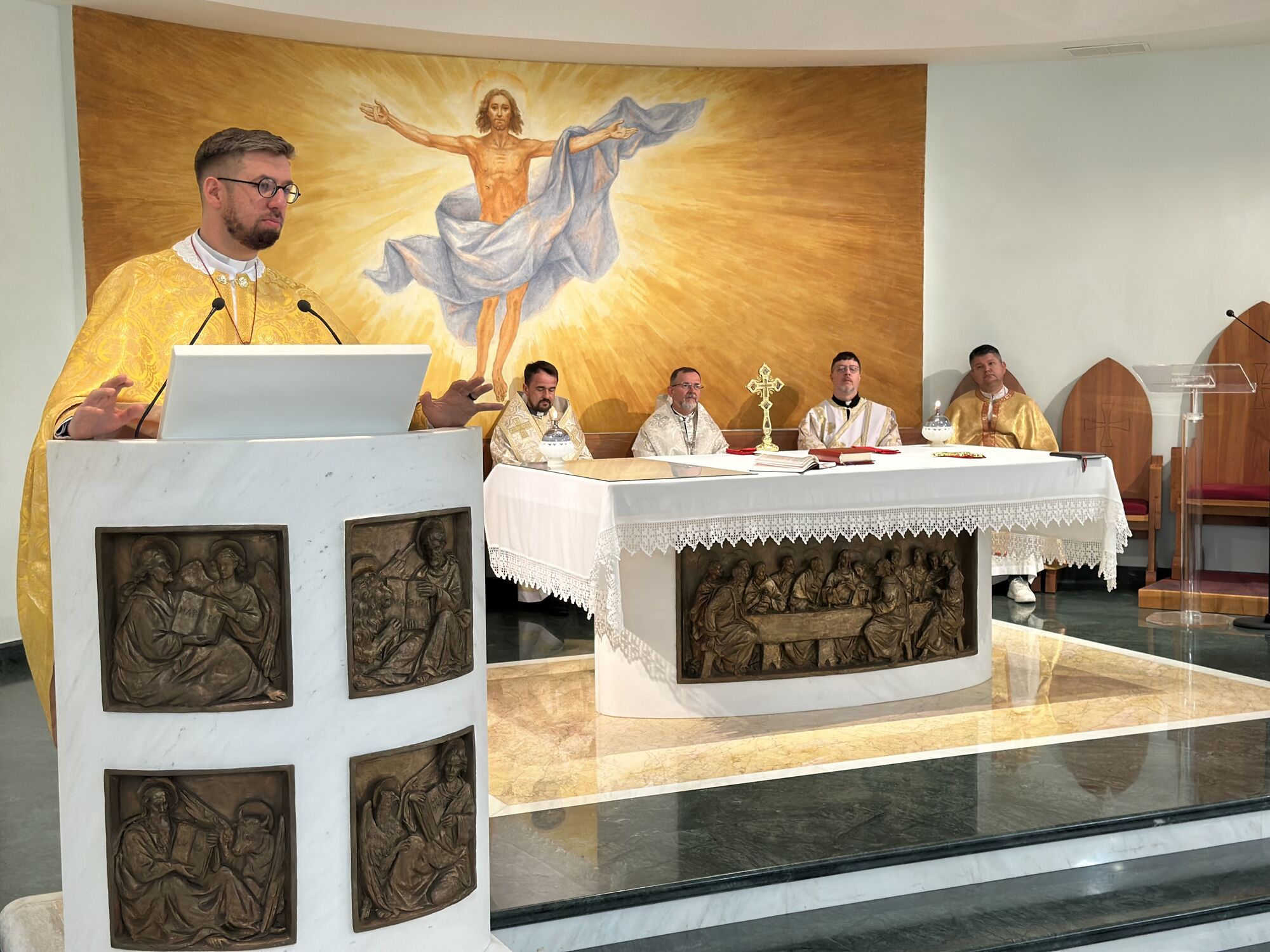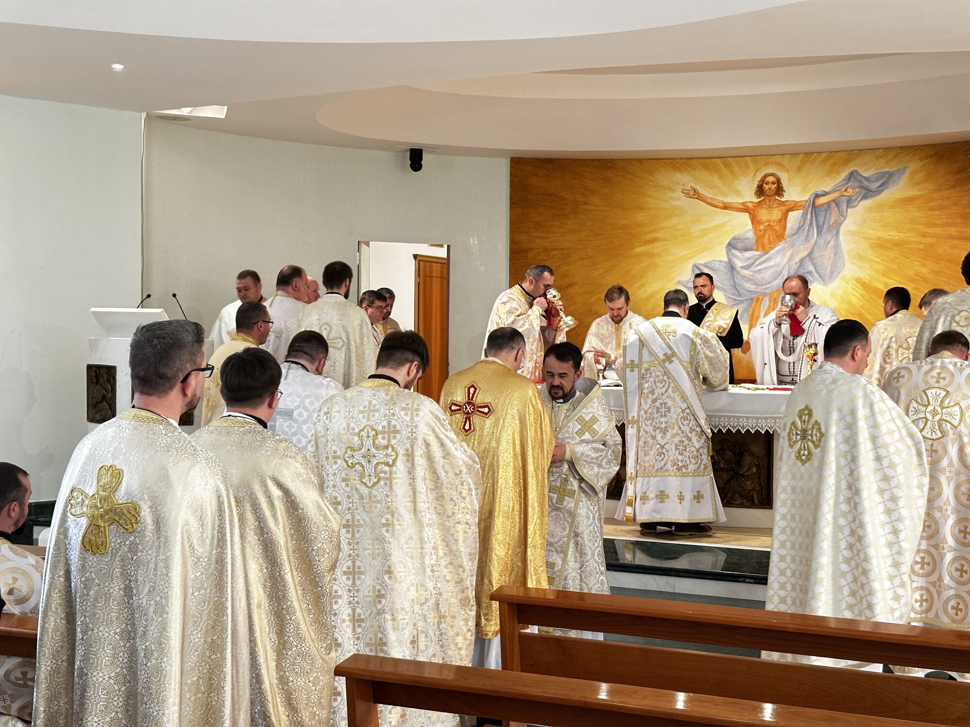 Духовна віднова розпочалася молитвою за мир в Україні, яку очолив апостольський екзарх владика Богдан. У своєму слові до священників єпископ наголосив, що молитва — це не лише вираз особистої віри, а й сила, яка скеровує людину до дії: до проповіді доброї новини, що несе мир. Тому, за словами архиєрея, священники покликані чувати над своїми серцями, щоб своїм служінням і словом дарувати людям надію.
