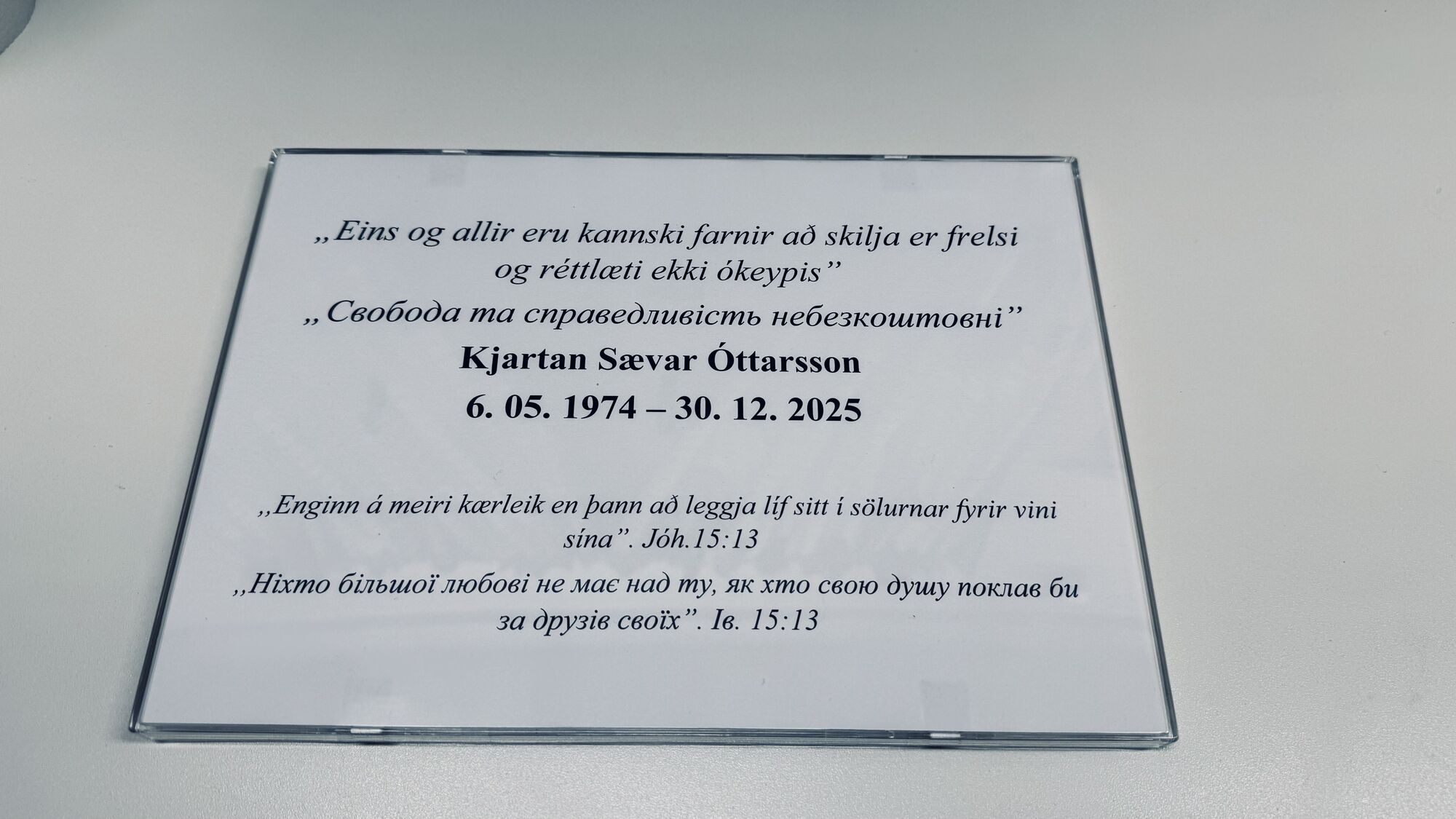 Кʼяртан Сайвар Оттарссон народився 6 травня 1974 року і загинув 30 грудня 2025 року у віці 51 року. Він добровільно вирушив в Україну, керуючись глибоким почуттям морального обов’язку, солідарності та віри в свободу і справедливість.