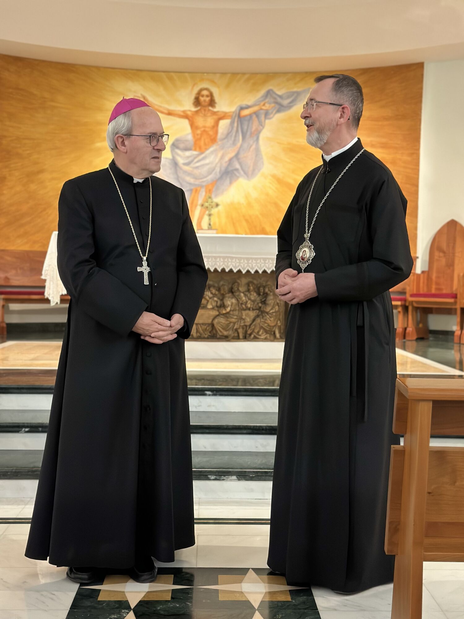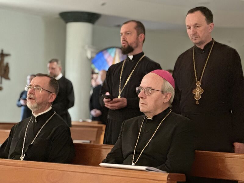 Обидва архиєреї разом помолились вечірню зі священниками Апостольського екзархату, які перебувають у Сан-Джованні-Ротондо на реколекціях. У духовних вправах поруч із ними беруть участь також душпастирі Паризької єпархії Святого Володимира. Місце проведення реколекцій — святиня, пов’язана з постаттю святого Падре Піо, — надало зустрічі особливого духовного виміру.